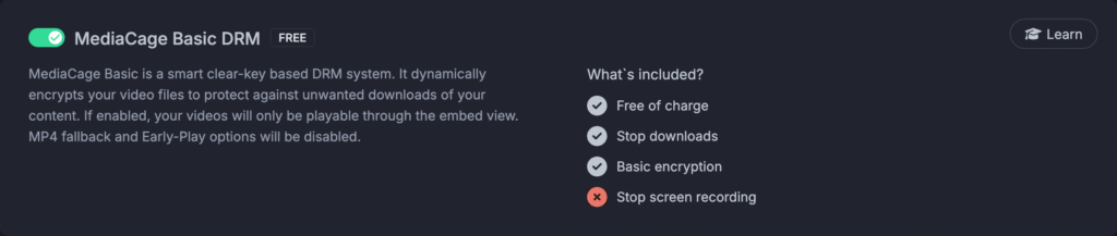 Bunny net offers MediaCage Basic DRM protection. They promising: